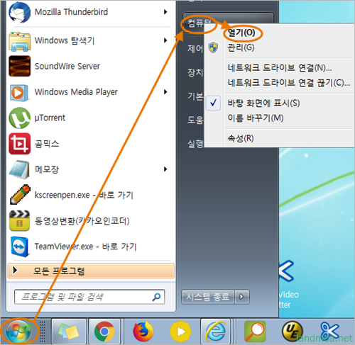 이제 윈도우즈 종료버턴을 눌러 봅니다. 위 화면처럼 정상적으로 종료버턴이 있다면 성공한 것으로 봐도 됩니다.